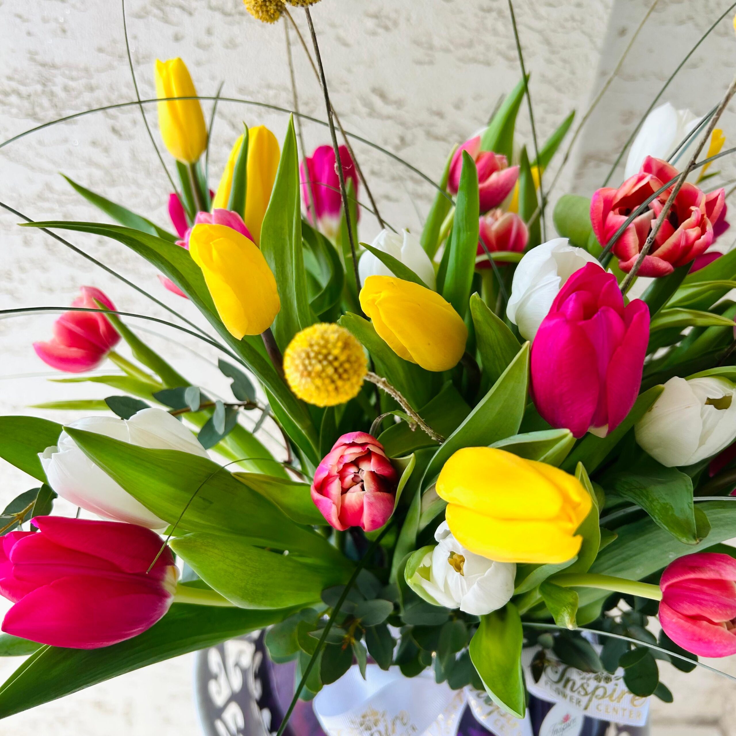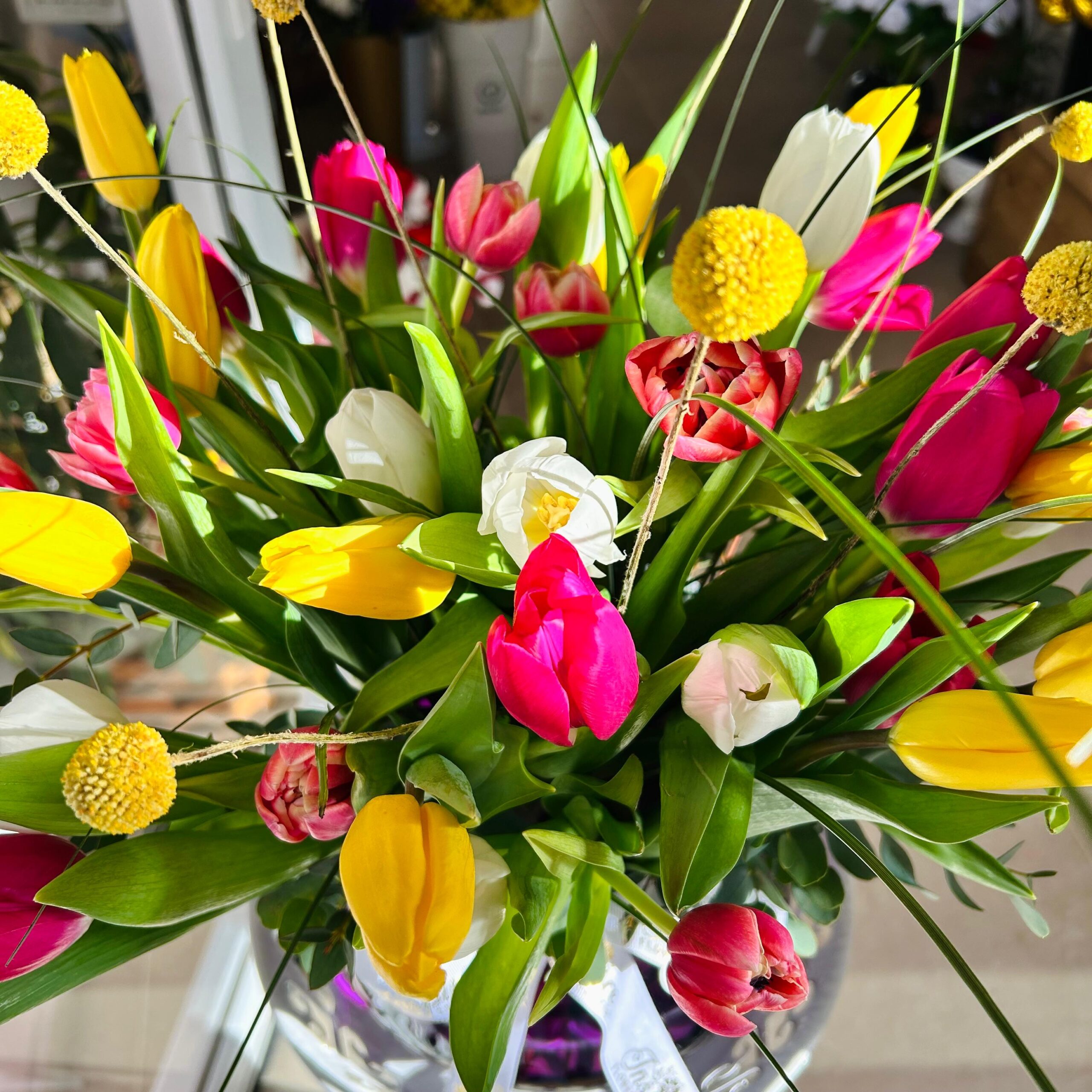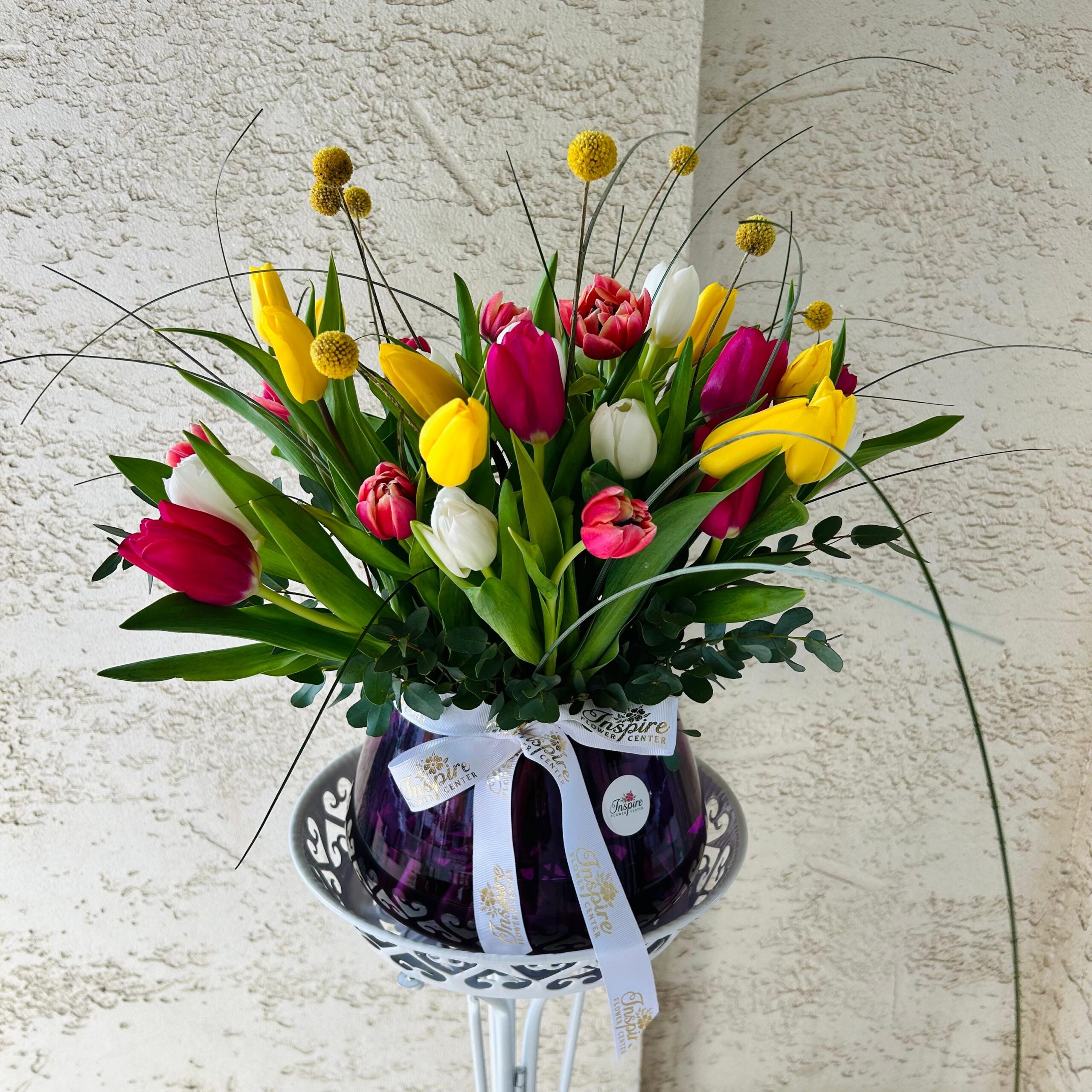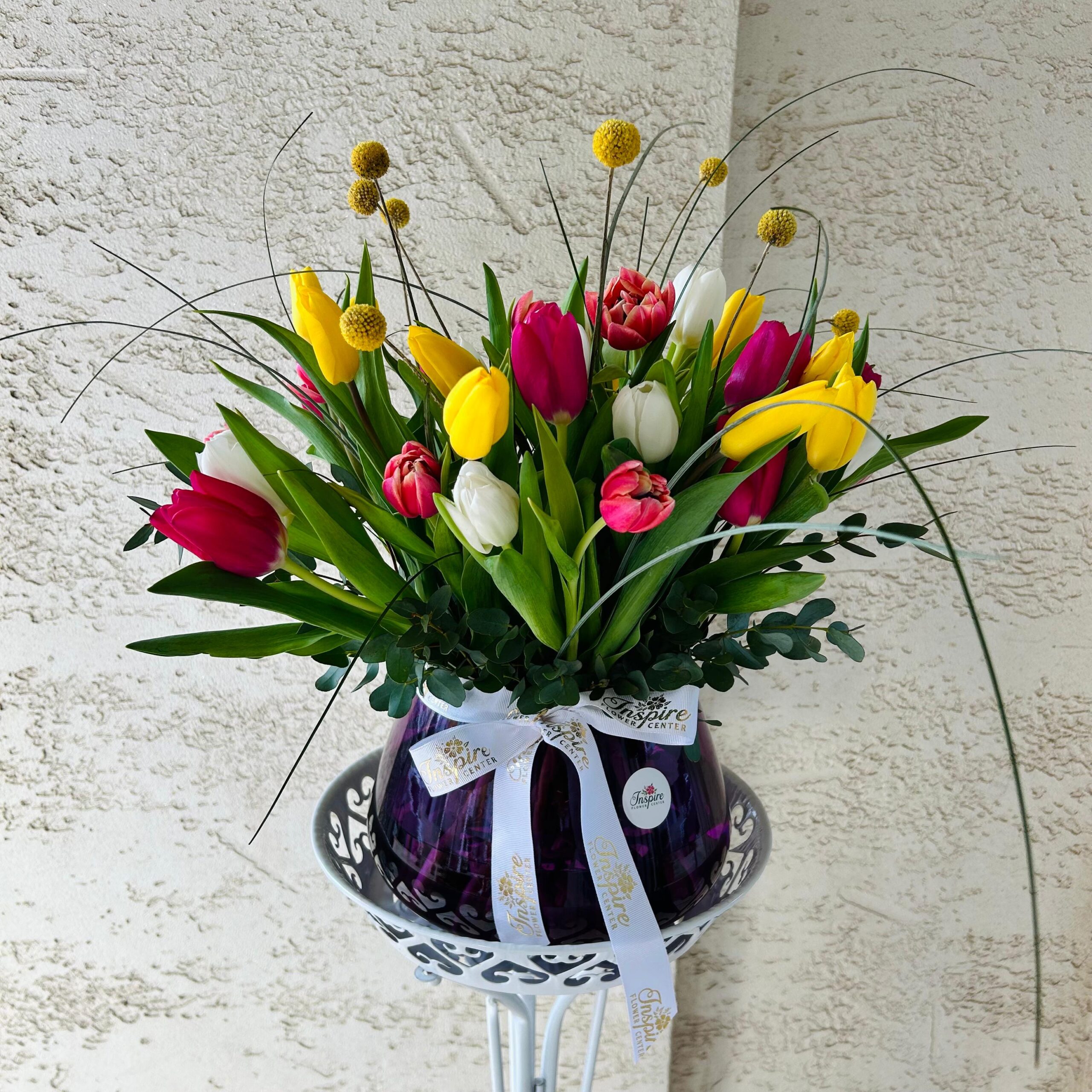 41 Adet Cam Fanusta Renkli Lale Aranjmanı