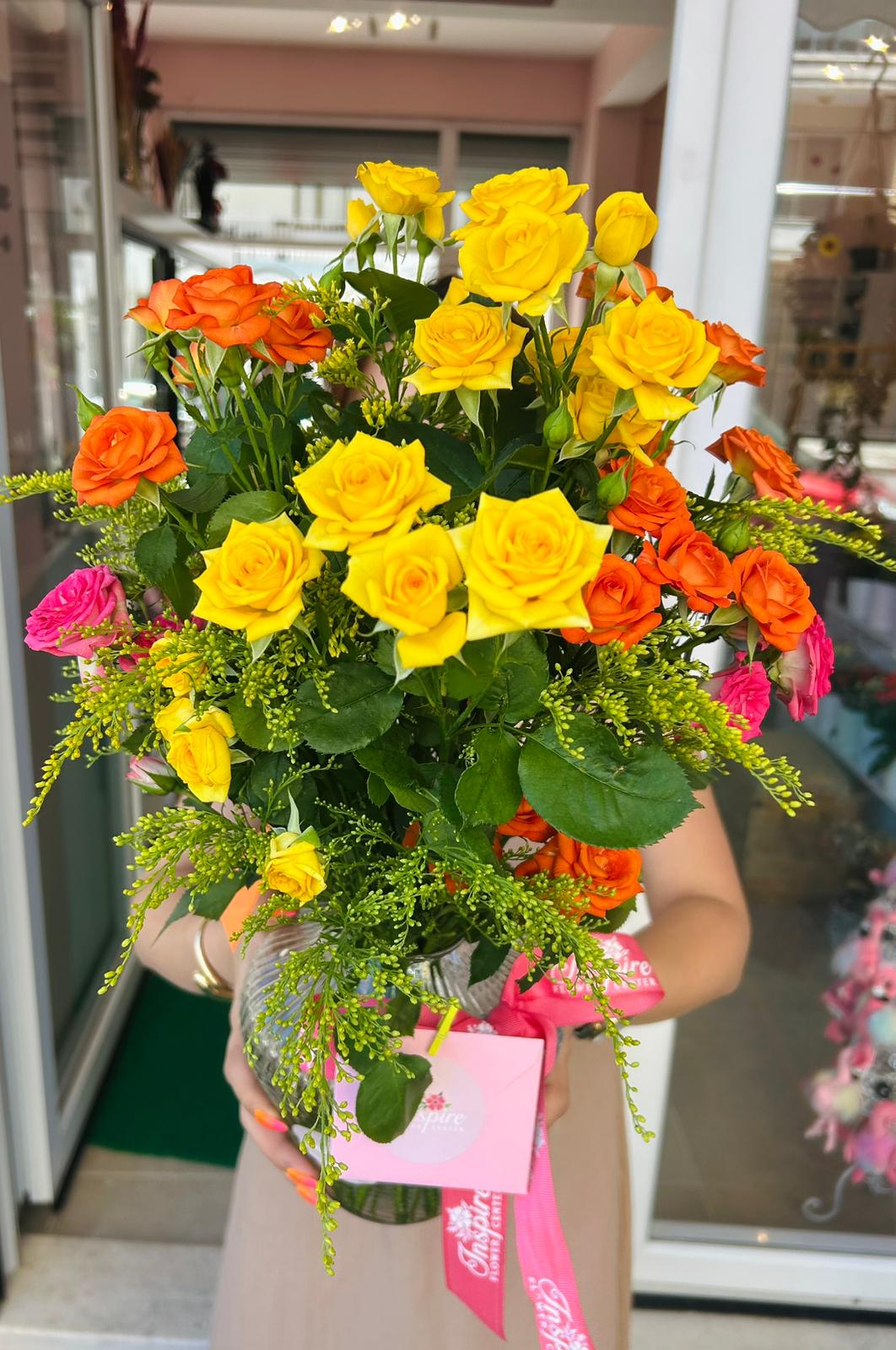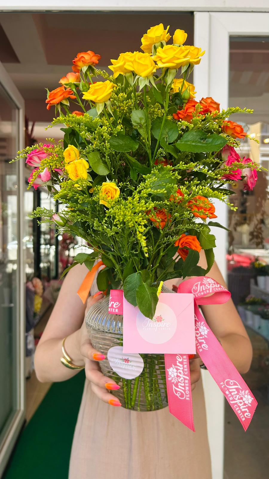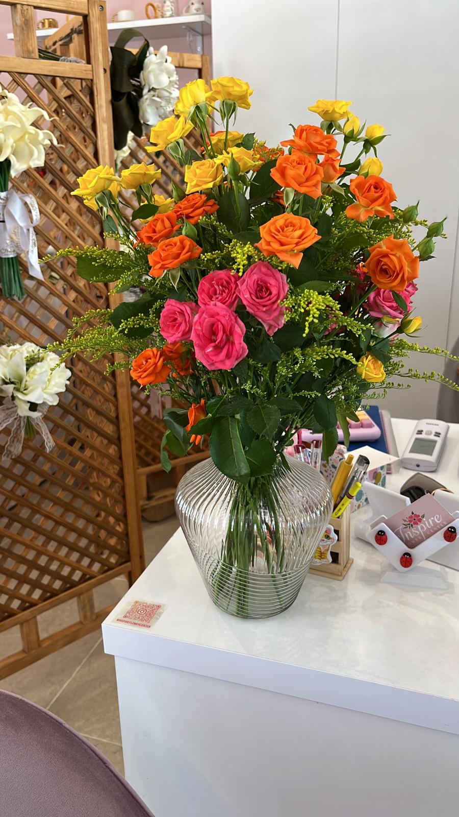 Renkli Çardak Gül Vazo Aranjmanı