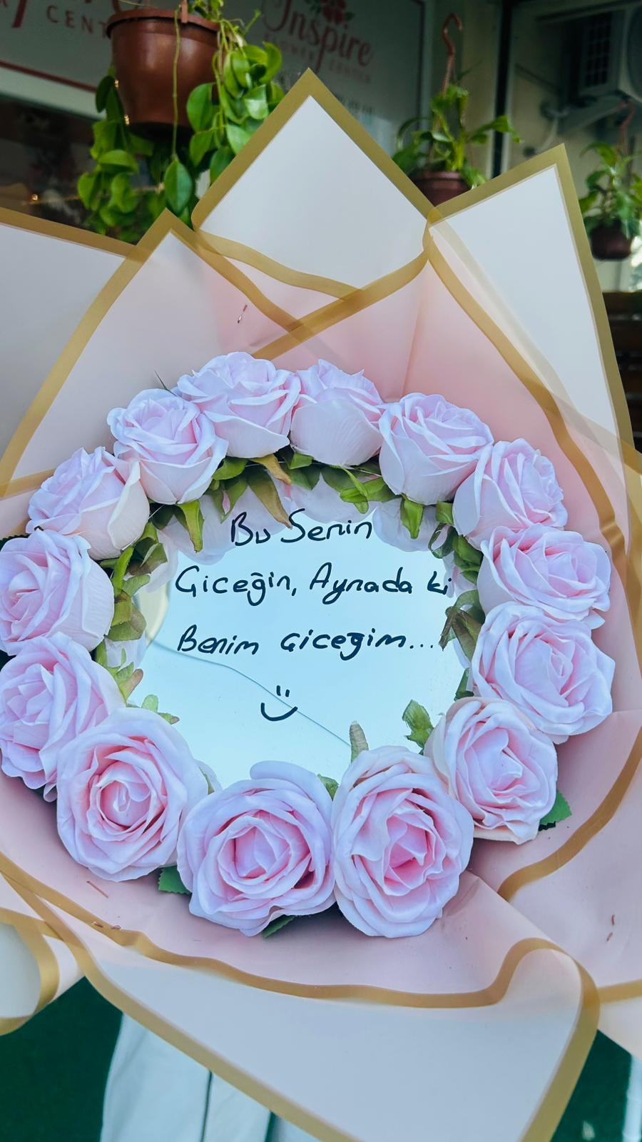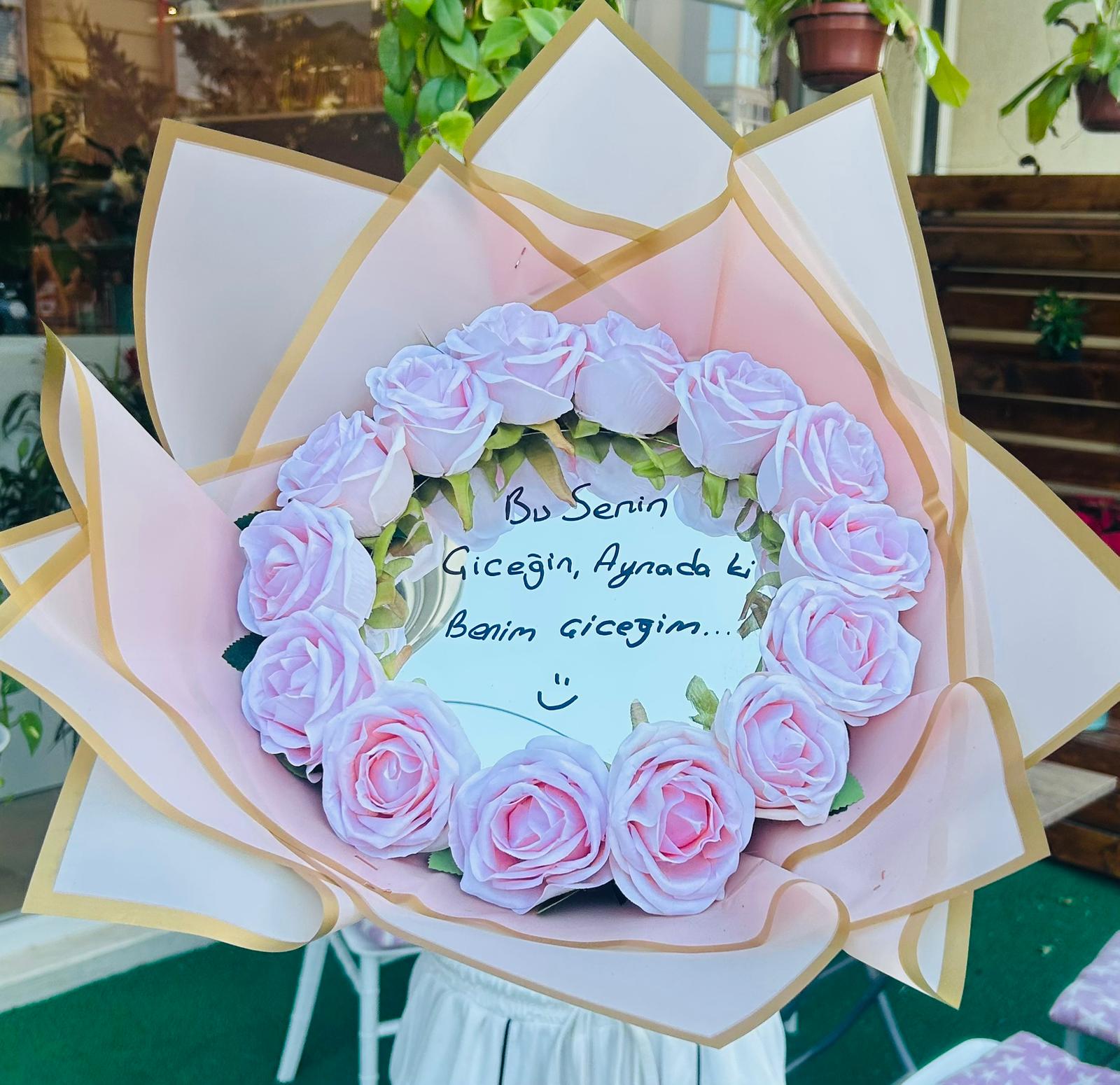 Dilediğiniz yazı ile sevdiklerinize aynalı buket hediye edebilirsiniz.