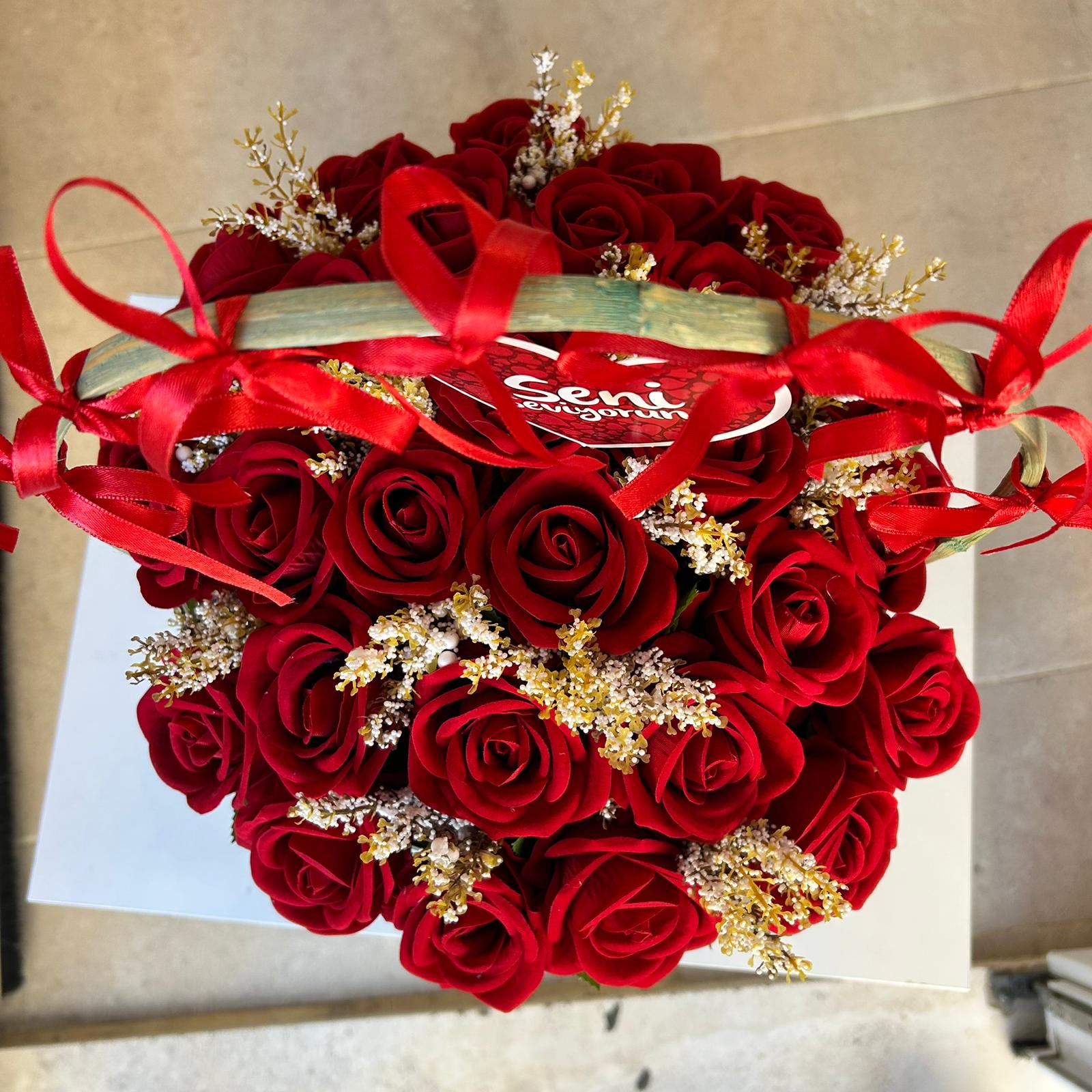 Ürün tamamen yapay çiçeklerden oluşmakdır.